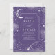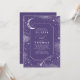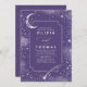 Convite de ensaio jantado com lua crescente, estrela cadente, galáxias em prata e roxo