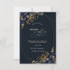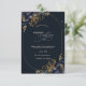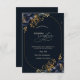 Flores azuis marinhos elegantes com folhas de ouro sobre fundo azul marinho. Um convite bonito que pode ser personalizado com seu nome. Selecione o botão "personalizar" para alterar o estilo, a cor e o tamanho da fonte.