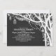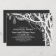 Bonita safra, mas moderna, janta convite para ensaio com design de árvore de quadro-negro, pendurando frascos, flores, folhas e cordas de luz. Um convite perfeito a preto e branco para amantes de jarro de mason planejando ao ar livre - janto de ensaio de jardim com flores silvestres e árvores.