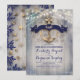 Os convites para janto de ensaio costeiro ou costeiro apresentam âncora de folha de ouro, monograma azul marinho, corda de luzes e fundo de madeira derivada
