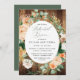 Lindos convites de janto de ensaio com um elegante tom pastel neutro e neutro molhado em moldes florais botânicos em tons suaves de pêssego, laranja, pincel suave, amarelos e muitos tons de verde de sábio verde a verdes brilhantes e profundos. Seus detalhes personalizados são exibidos em um elevado layout tipográfico que coloca o convidado de honra em frente e no centro.