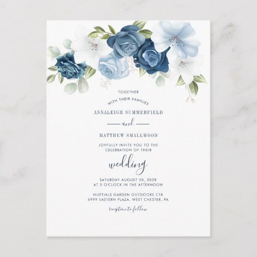 Convite Janto de Ensaio de Casamento Azul Floral Dusty