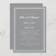 O design de convite para janto de ensaio de casamento simples e chique apresenta um simples design minimalista contemporâneo com uma dupla borda em branco sobre um fundo de cinza. Personalize a design de casamento com seus detalhes em letras de tendências e roteiro em branco. As traseiras combinam na cinza. Para obter melhores resultados, substitua os detalhes do modelo com seus próprios detalhes, deixando espaço entre os parágrafos como no exemplo e use todas as letras minúsculas quando especificado. Envie um email para invitationsuites@gmail.com com perguntas ou solicitações personalizadas.