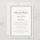 Simples, castanho-chico e branco, o design de convite para janto de ensaio de casamento apresenta um simples design minimalista contemporâneo com uma dupla borda em marrom-rústico sobre um fundo branco-nítido. Personalize a design de casamento com seus detalhes em letras de tendências e roteiro em castanho. As costas combinam em marrom sólido. Para obter melhores resultados, substitua os detalhes do modelo com seus próprios detalhes, deixando espaço entre os parágrafos como no exemplo e use todas as letras minúsculas quando especificado. Envie um email para invitationsuites@gmail.com com perguntas ou solicitações de cores personalizadas.