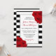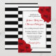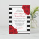 A coleção de luxo moderna de chic apresenta um histórico clássico de listras brancas e pretas, acentuado com belas rosas vermelhas de rubi e uma falso moldura de folha de prata. Estes convites de janto de ensaio são fáceis de personalizar com a sua própria redação e itens de casamento correspondentes podem ser encontrados na coleção.