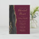 A borda esquerda deste elegante e moderno convite de ensaio de casamento mostra uma borda preta de água colada, aparada com falsa brilho dourado. O texto personalizável combina manuscritos dourados, copperplate e fontes itálicas em fundo burgundy. O verso apresenta um design de agate preto e dourado correspondente.
