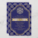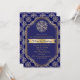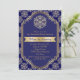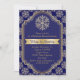Dourado floco de neve azul e armação convite de janto de ensaio personalizado, apresentando uma imagem IMPRESSA de um floco de neve dourado com joias, um quadro azul marinho com contorno dourado, um banner dourado e um padrão com flocos de neve. Este design moderno, elegante e na moda é totalmente personalizável e perfeito para casamentos de Natal de inverno.