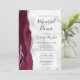 A borda esquerda deste elegante e moderno convite de ensaio de casamento mostra uma borda vermelha de cor-d-água borrifada com brilho de prata. O texto personalizável combina o script de escrita manual preto com fontes em itálico e em copperplate em uma cinza e fundo de mármore branco. O lado inverso apresenta um design de burgundy e agate prateado.