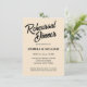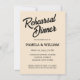 Simples estilo de janto de ensaio de casamento convites que apresentam letras pretas e estilizadas em um fundo cor de champanhe. Edite seus convites substituindo nomes, data/hora, local e informações de contato por seus próprios nomes. Selecione o tamanho do convite e o estilo do papel.