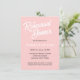 Simples estilo de janto de ensaio de casamento convites que apresentam letras brancas e pretas, estilizadas sobre um fundo cor-de-rosa pincelado e tenso. Edite seus convites substituindo nomes, data/hora, local e informações de contato por seus próprios nomes. Selecione o tamanho do convite e o estilo do papel.