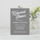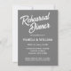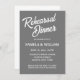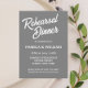 Simples estilo de janto de ensaio de casamento convites que apresentam letras brancas e estilizadas em um fundo de cor de cinza escura e tenra. Edite seus convites substituindo nomes, data/hora, local e informações de contato por seus próprios nomes. Selecione o tamanho do convite e o estilo do papel.