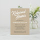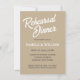 Simples estilo de janto de ensaio de casamento convites que apresentam letras brancas e pretas, estilizadas em um fundo de cores caquis, em tendências. Edite seus convites substituindo nomes, data/hora, local e informações de contato por seus próprios nomes. Selecione o tamanho do convite e o estilo do papel.
