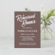 Simples estilo de janto de ensaio de casamento convites que apresentam letras brancas e estilizadas em um fundo de cores trendy e esticado. Edite seus convites substituindo nomes, data/hora, local e informações de contato por seus próprios nomes. Selecione o tamanho do convite e o estilo do papel.