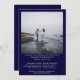 Este ensaio de casamento azul na moda marinho e o convite para janto de ensaio é moderno, chique e minimalista. Apresenta uma fotografia do casal com texto subestimado que contém todas as informações relevantes. Simples, bonito e elegante.
