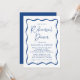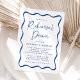 Convide convidados para o seu janto de ensaio em estilo com os nossos convites para janto de ensaio de casamento do Quadro Azul Moderno. O design apresenta as palavras "Janto de ensaio" apresentadas num script azul manuscrito em contraste com um fundo branco. Os detalhes do seu janto de ensaio estão cercados por uma borda azul ondulada. Este convite à janta de ensaios retrorreflectores é perfeito para usar em jantadas de ensaio casuais e modernas.