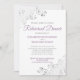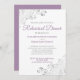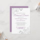 Este belo convite de Janto de ensaio apresenta um simples, mas elegante design de púrpura lavanda e texto de cinza sobre fundo branco com caramujos de folha fina prateada ou filigrana nos cantos. Bem-vindos membros de sua festa de casamento e convidados especiais para compartilhar em um Janto de ensaio com esses convites maravilhosos. Este convite é totalmente personalizável, para que você possa alterar o texto de acordo com sua situação e suas necessidades. Projetado para coordenar com nossa Suíte Casada Elegante de Roxo e Cinzas