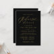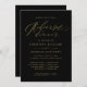 Convide seus convidados de janto de ensaio de casamento em estilo com este convite de casamento personalizado preto e ouro minimalista com um simples fundo preto com tipografia elegante faux gold para personalizar com seus detalhes de casamento. Os melhores votos para o seu casamento e casamento! Desenhada por Susan Coffey.
