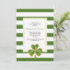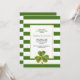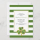Um trevo irlandês ou shamrock com contorno de ouro e listras brancas verdes adoram este convite de janto de ensaio de casamento. É perfeito para um janto de ensaio de Dia de São Patrício.