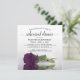 Este belo convite de janto de ensaio de casamento mostra uma foto de um rosa de cor roxa de ameixa, de solteiro longo, estendida em seu lado refletindo em uma piscina de água com ondas e ondulações. O título elegante da caligrafia de script empresta classe e estilo. Inclui informações sobre o ensaio e o janto. Maneira perfeita de manter a festa de casamento informada enquanto os agradece por fazerem parte do seu dia especial.