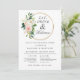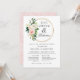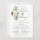 Um convite de janto de ensaio único para dar o tom para a sua celebração de casamento, este design convida os seus convidados a "Comer, Beber e ensaiar". Um quadro circular de anel duplo acentua o título do convite e é embelezado com um buquê floral de cor-de-água, rosas brancas e cor-de-rosa-pincel, com vegetação rasteira. O modelo de texto inclui espaço para os nomes da noiva e do noivo e os detalhes do tempo e do local do ensaio, bem como o tempo e o local do janto.