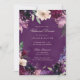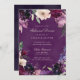 Flores românticas em tons de robusto rico, lilás suave, berinjela profundo, coroa roxa e rosada com botânicos verdes modernos, como samambaias e eucalipto. Um fundo profundo e roxo de aquarela gravatas tudo junto com a tipografia elegante nestes convites de janto de ensaio romântico.