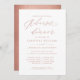 Convide seus convidados de janto de ensaio de casamento em estilo com este convite de casamento personalizado de escrita de caligrafia branca e rosa dourada com um simples fundo branco com elegante tipografia de rosa dourado falso para personalizar com seus detalhes de casamento. A parte de trás do convite tem uma textura falsa de ouro rosa. Os melhores votos para o seu casamento e casamento! Desenhada por Susan Coffey.