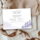 Convite de janto de ensaio de casamento no inverno com design de cor d'água cênica em tons de lavanda e cinza. A cena da neve apresenta uma paisagem romântica de floresta montanhosa com pinheiros, derivas e um nevão leve. Todo o texto é editável, incluindo a junção a nós na noite anterior à introdução da redação. Se você quiser combinar produtos, por favor, navegue na minha coleção da Floresta de inverno.