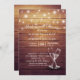 Modelos de Cartão de Convite para Janto de Ensaio de Casamento - Óculos de Champanhe de Vintage e Luzes de Corda no Fundo Russo de Madeira. Um Design perfeito para o seu grande dia. Todo estilo de texto, cores, tamanhos podem ser modificados para ajustado das suas necessidades!