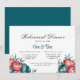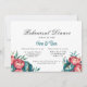 Uma ilustração aquosa de um buquê de pénia brilhante em azul marinho e laranja. O buquê consiste de peônias com flores grandes e redondas e folhas verdes profundas. O fundo é marinho azul. Convites e material de casamento correspondentes estão disponíveis neste conjunto de coleções.