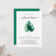 Design de convite para ensaio tropical com de janto com cor d'água verde monstera ilustração num fundo branco simples. O lado inverso do convite está em cor verde profunda.