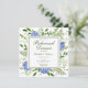 Este convite de janto de fotos de hydrangea azul é romântico, caprichoso e atordoante! Com a sua aquarela, as drangas azuis multicelulares, o verde natural esperto, a moderna, mas tradicional letra clássica, com uma foto favorita no verso, é perfeita para qualquer casal. Ao selecionar Personalizar esta modelo e digitar as suas informações e carregar a sua fotografia, pode ver os seus convites lindos em segundos!