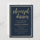 Uma máquina de escrever sobre temas azuis e dourados com tipografia de fonte dourada estilo rústico estilo de casamento Ensaios de Janto. É perfeito para qualquer garota refinada e sofisticada ou qualquer pessoa. Este design é ideal para um evento de festa elegante e de tendências. Personalize este design com sua própria mensagem e informações personalizadas. Todas as designs são impressas.