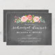 Concurso de janto de ensaio com rosas cor-de-água rosa e uma bela fonte caligráfica sobre fundo de quadro negro. Visite o compro para ver o resto da suíte de convites para Rosa Garden.