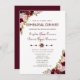 Janto Único Elegante Burgundy Marsala, Ensaio Floral. Conjuntos elegantes com canto floral charmoso de marsala, setas de coração com buquê floral como divisor, lindas fontes. Use a ferramenta Personalizar para adicionar suas informações. Para mais, por favor, visite o meu Elegante Marsala Floral Invitation Suite.