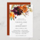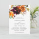 Convite para janto de ensaio floral russo de vassoura, que inclui um buquê floral pintado com cor d'água com tons quentes e sujos de laranja queimada, terracota e burgundy profunda, juntamente com um pouco de verde. Este convite elegante com os ricos tons do outono é excelente para um casamento outono.
