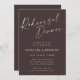 Defina o tom para uma na moda e uma celebração íntima com este elegante convite para janto de ensaio. Apresentando uma mistura moderna de escrita fluente e tipografia serif clássica em um fundo castanho de café no outono, este design eterno é perfeito para casais que adoram simplicidade sofisticada. Personalize-o com nomes, data, hora e detalhes de localização para um toque personalizado. Ideal para encontros formais ou casuais que chegam ao grande dia.