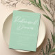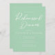 Este convite de janto de ensaio verde de menta macia apresenta um guião branco chic para um doce evento de primavera ao ar livre. Simples tipografia em um convite verde pastel sólido tranquilo para um local de jardim.