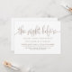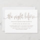 O vamos comemora a noiva e o noivo antes do casamento. Convide a família e os amigos com este elegante convite de janto de ensaio. Apresenta caligrafia caprichosa com tipografia clássica. Personalize adicionando nomes, data, endereço e outros detalhes. Este roteiro "A Noite Antes do Convite" é perfeito para qualquer época de casamento e tema.