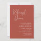 Na noite anterior... Certifique-se de que tudo é perfeito para o grande dia; faça alguns convites modernos para o seu janto de ensaio de casamento. Uma tipografia moderna e uma cor tendenciosa de terracota para a sua papelaria de casamento: escolha esta simples e elegante suíte de casamento. Totalmente personalizável: você pode alterar o plano de fundo e a cor do texto conforme desejar.