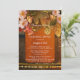 Convite de ensaio jantado que inclui um vinho moderno colorido com o tema design com uvas, rosas coloridos de pêssego e lanternas de corda num fundo de barril de vinho. Na parte traseira, há um modelo de código QR facilmente personalizável para sua conveniência. Este convite tem um cartão RSVP e faz parte de uma coleção. Bonita para uma celebração de vinhedo ou vinhedo.