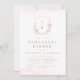 rosa de ouro falso e convite de janto minimalista cor-de-rosa pincelado, com as suas iniciais monogramadas enquadradas por crista elegante e folhas botânicas ilustradas à mão no topo. Os detalhes do evento são mostrados abaixo no script moderno e na fonte clássica. Simples e luxo. Ver todas as peças correspondentes na coleção