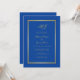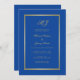 Convide seus convidados de janto de ensaio de casamento em estilo com este elegante convite de monograma personalizado de azul-safira e ouro. O design simples apresenta as iniciais falsas do monograma dourado em um script falsa de ouro junto com todos os detalhes de seu janto para personalizar bordado com uma imagem brilhante e falsa de ouro. Os melhores votos para o seu casamento e casamento! Desenhada por Susan Coffey.
