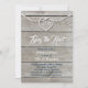 Uma corda branca amarrada em um coração, marinho e branco, decora este convite de janto de ensaio num fundo de conselho de madeira branqueada ao sol, fazer-o perfeito para o casamento temático náutico.