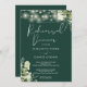 Luzes de cordas elegantes, verde floral, convite de janto de ensaio verde esmeralda com seus nomes e detalhes de janto de ensaio definidos no texto chic e suas iniciais de monograma no verso. Projetado por Thisnotme©