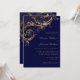 Convite Janto de ensaio Floral Dourado azul com Marinho de