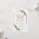 Procurando um convite de casamento para o ensaio de temas modernos e elegantes ou verdes?  Este design de luz apresenta uma fonte de caligrafia moderna e uma arte de linha geométrica em um falso rosa de ouro e dois arranjos de folhagem de aquarelas.  O fundo é uma imagem de mármore.