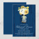 Anúncio do Janto de ensaio de casamento. Fundo no design de madeira de celeiro azul-rustica Marinho com um Mason Jar cheio de margaridas brancas, girassóis e Billy Balls amarelo. Se o esquema de cores não é o que você queria, por favor me avise e eu recriarei isso para você, mas por favor, entre em contato comigo antes de fazer um pedido. E-mail paula@labellarue.com Feliz Planejamento de Casamentos! Certifique-se de escolher seu estoque de papelão favorito para que ele seja impresso.
