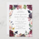 Moody floral test janta convite com uma armação com figos pintados a aquarela, bagas e rosas em ameixa e cor-de-rosa em torno dos seus detalhes de evento. O modelo é concebido para um local distinto para o ensaio e o janto. A parte de trás é uma cor de ameixa profunda e pode ser alterada para qualquer cor desejada. Os tons profundos de roxo fazem este excelente de convite para uma celebração no outono.