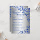 © Designs socialitas. Um elegante convite azul real e prata com lindas espirais decorativas de canto prontas para serem personalizadas para o seu evento especial. O estilo da fonte, o texto e o tipo de papel podem ser alterados. Precisa de ajuda para personalizar ou adicionar produtos com este design? Por favor, não hesite em contactar Designs socialitas.