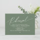 Anuncie a sua alegria para sempre em estilo com o nosso moderno romântico clássico sábio verde-verde-verde-tema design de ensaio de casamento (ensaio) janta festa de festa de ensaio de casamento. É ideal para casais que decidiram celebrar a noite antes do seu grande dia. Com seu design sofisticado, mas lúdico, este convite certamente define o tom de um evento inesquecível. A carta de convite apresenta o moderno design de roteiro romântico, adicionando um toque de elegância do eterno à sua celebração. Projetado por TeeshaDerrick